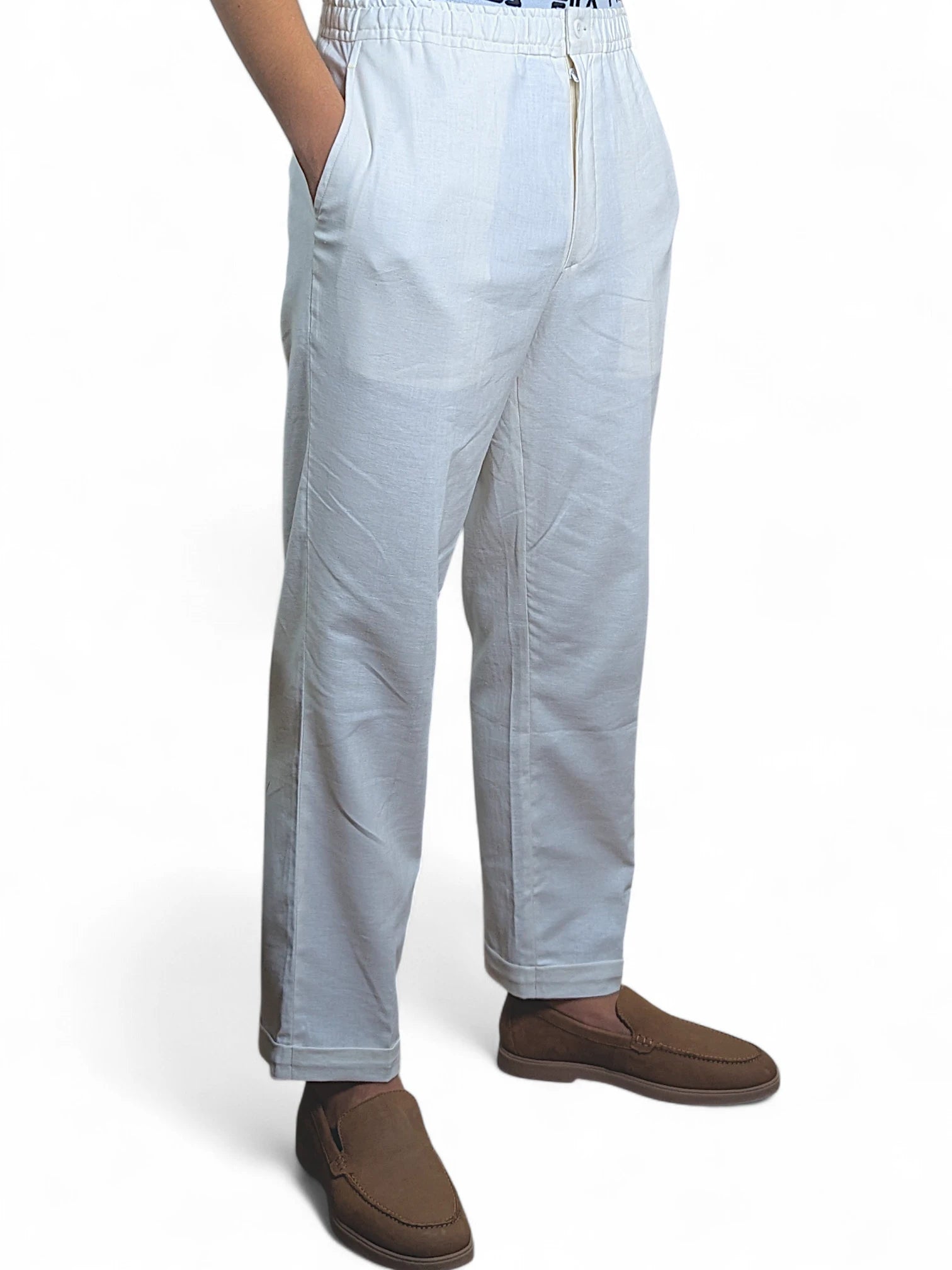 These white linen pants offer effortless comfort and a clean, relaxed fit. Designed with an elastic waistband and functional back pocket, they’re perfect for warm-weather days and laid-back occasions. Breathable, lightweight, and timelessly versatile.